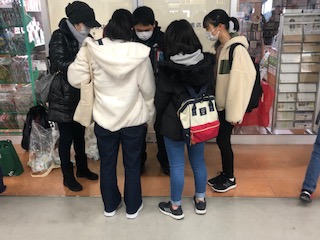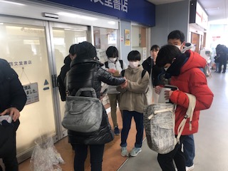 今日は2年生の校外学習。寒いけれど、スッキリ晴れ渡り、青空が広がります。桜上水で出発チェックをして出かけます。