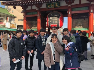 浅草寺の代名詞、雷門の前で!みんな楽しそうです。