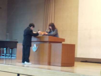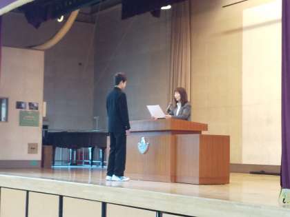 今朝も生徒朝会のあとに2つの表彰が行われました。