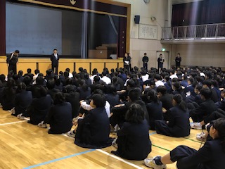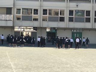 本日避難訓練を行いました。今月の避難訓練は、「不審者侵入における避難の方法の確認」を目的に実施しました。昼休みという設定で行ったので、グランドで遊んでいる生徒や、教室周辺で過ごしていたりする生徒など、バラバラな動きでしたが、最終的に体育館に集まり、人員確認を行いました。訓練だと思って気を抜かず、一人一人がその時を想定して真剣に臨むことが大切ですね。