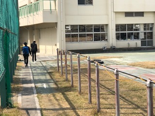 今日は、2年生が教科書を受け取りに来ています。昨日同様、一方通行の動線で教科書を受け取ります。