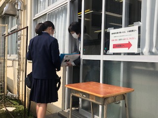 昨日よりも受け取る教科書の冊数が多いので、ちょっと重たそうです。