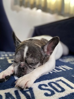 写真は、我が家の愛犬です。犬種はフレンチブルドッグです。12歳でもうおじいちゃんですが、まだまだ長生きしてほしい!