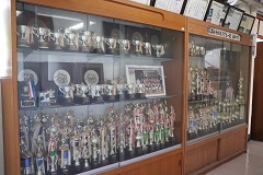 皆さんが生まれる前のものから、最近のものまで多くのトロフィーや表彰楯があるので、ぜひ探してみてください。