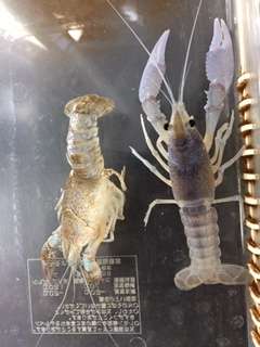 このザリガニを見てあることに気づきませんか?そう、青いんです!ザリガニはアスタキサンチンという栄養素で赤くなっているので、エサを調整することで青いザリガニが育つんです。不思議ですね。