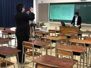 ビデオを前に、先生方も緊張しますが頑張っています!
