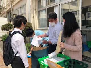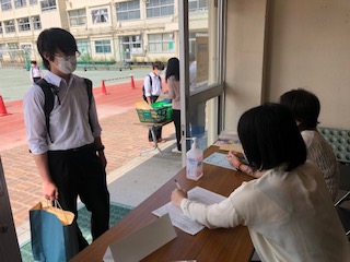 3年生は順路に沿って動き、課題や配布物受け取ったり、健康観察や家での生活の様子を確認したりしています。みんな元気そうで、短い時間ではありますが、先生方に楽しそうに楽しそうに今の様子を報告していました。