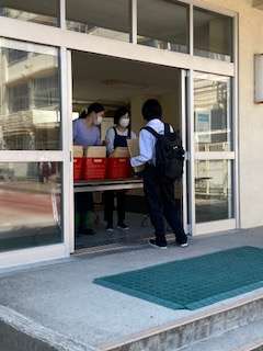 順路に沿って動き、課題や配布物を受け取り、健康観察や家での過ごし方を確認したりしています。