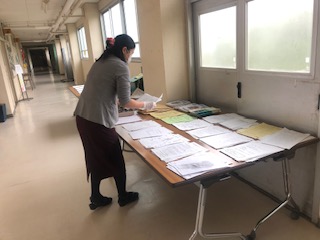 受け取った課題は、提出の確認をして、教科別に分けます。こうしてみると、結構たくさんありますね!