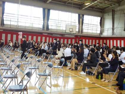 夕べの雨も上がり清々しい朝を迎えました。世界を襲った新型コロナ感染症の影響で、例年よりずいぶん遅くなってしまいましたが、今日は第73回目の本校入学式が挙行されました。多くの保護者の皆様にもご参加いただき盛大に入学式が行われたこと、本当に良かったです。