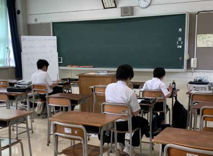 書道部の仮入部の様子です。教室内はしんと静まり返り、集中して書道と向き合っている空気が感じられました。1年生も、お手本を見ながら一筆一筆丁寧に書いていて、先生にお褒めの言葉をいただいていました。
