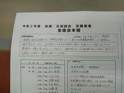 本日の6校時、全学年で23日の生徒総会に向けてのクラス討議を行いました。どのクラスも自治委員が中心となってしっかりと話し合いをしていました。朝に打ち合わせをした1年生の自治委員も良くがんばっていましたね。これから生徒会本部役員会や各種委員会で今日出た意見をもとに検討することになります。より良い学校生活をめざし、充実した生徒総会にしていきましょう。