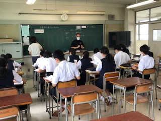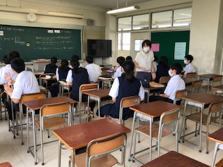 今日の英語の授業では「未来形を使って文を作る」という単元を学習していました。1時間の授業の中で、ペアで会話練習をしたりdictation(聞き取り学習)をしたり、教科書のリーディングをしたりと、とても盛りだくさんの学習内容を、テンボよく進めていました。後半にはALTの先生もいらして、生徒たちはALTの先生に続いて元気よく発音していました。