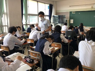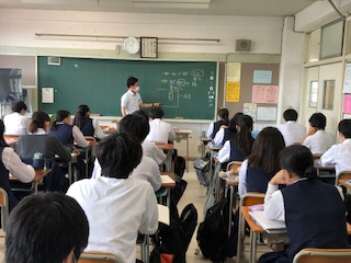 3年生の理科の授業では「電極の化学変化」について学習していました。『電極』とか『化学変化』とか少々難しいところではありますが、先生の「ここは大切ですよ!」という説明を、生徒たちはしっかり聞いていました。