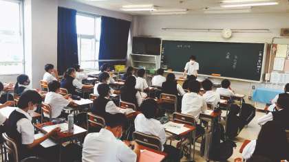 毎週火曜日は日本語の授業があります。日本語を通して哲学や文化をさまざまな方面から学びます。一年生のあるクラスでは東日本大震災について学びました。当時の惨状、復興について新たに知ったことがたくさんありました。みんな、真剣に授業を受けています。