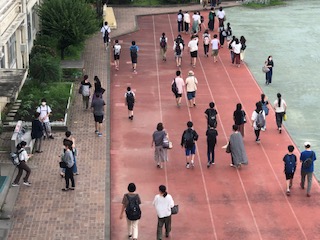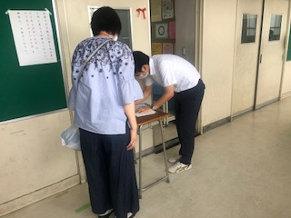 今日は引き取り訓練も行われました。東京都内で震度5以上の地震が発生した場合を想定して、保護者へ生徒の引き渡しを円滑に行うための訓練です。保護者の皆様には、お忙しい中多数ご参加いただき、ありがとうございました。