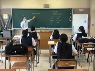 1年生の様子です。数学では、黒板を使って基本的な学習の復習を行っていました。もちろん、質問者が一人でも、丁寧に説明しますよ。