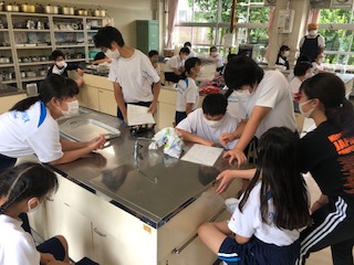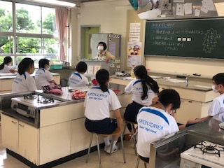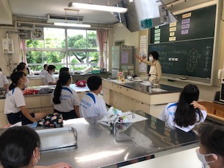 今日は、今後いつでも調理実習を行えるように、調理室の使い方や、調理の進め方など、1年生に調理実習の流れを伝えながら、みんなで一つ一つ確認しあいました。