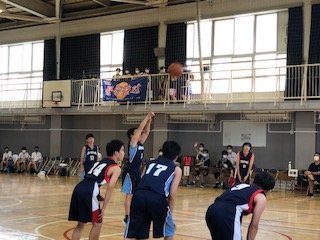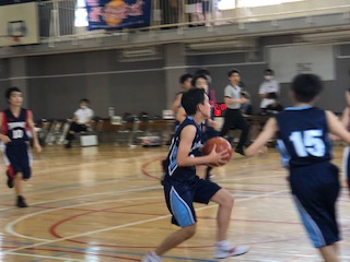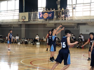男子の試合、?対弦巻中第1ピリオドが始まりました。10ー4でリードしています。
