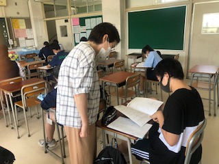 学習支援日3日め(3年生) 公開日 2020/08/05 更新日 2020/08/05 できごと 学習支援日前半5日間の折り返し、3日めになりました。今日も、参加申し込みをした生徒たちは、暑さに負けずに元気に登校しています。3年生の様子です。