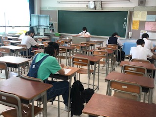 学習支援日5日め(3年国語) 公開日 2020/08/07 更新日 2020/08/07 できごと 3日から始まった学習支援日前半5日間も、今日が最終日となりました。今日も朝から多くの生徒たちが登校しています。3年国語では、生徒たちが黙々とワークを進めていました。