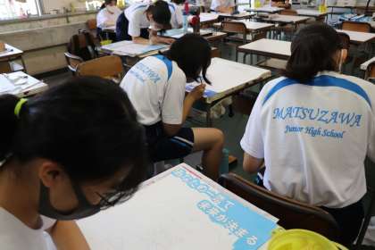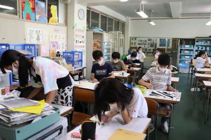 美術部では、毎年ポスターコンクールに出展する作品を、夏休みに描いています。