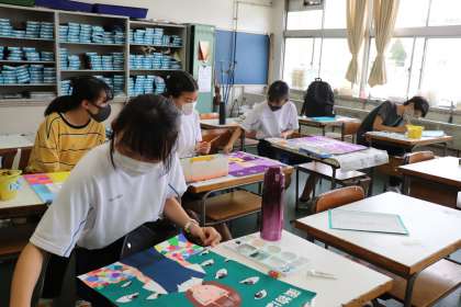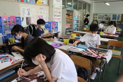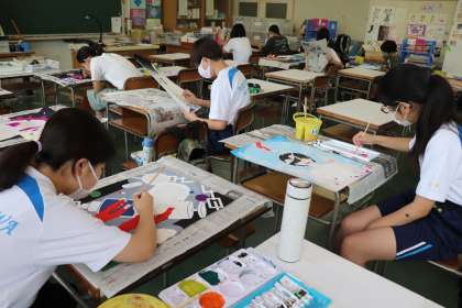 2、3年生は、昨年度より良い作品に仕上がるよう、デザインや色使いを工夫して美しく描いています。
