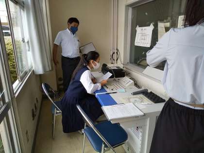 本日9月1日に、令和2年度後期生徒会役員選挙の公示がありました。朝の早い時間、一般生徒が登校してくる前に選挙管理委員のメンバーが集まり、その掲示物を準備していました。