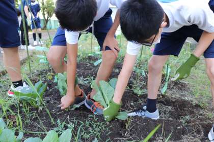 収穫した小松菜は、3時間目の調理で活用しました。味が濃くて美味しいと評判でした。