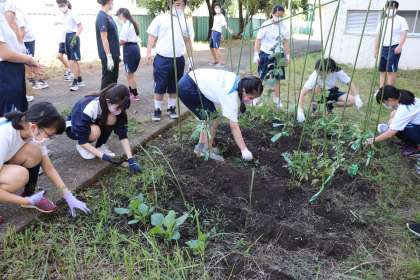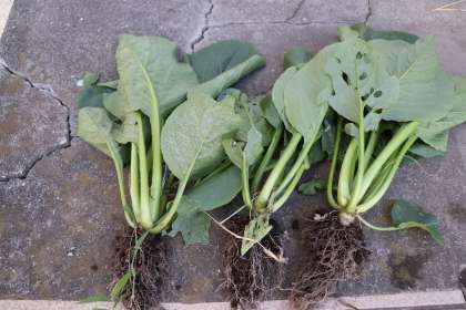 夏休みの間に成長し、濃い緑の小松菜が育ちました。まだ小さな小松菜もあるため、次週の楽しみとしてとってあります。