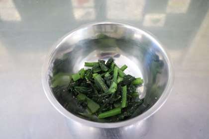 1時間目の栽培で収穫した小松菜は、胡麻和えになりました。自分達で育てた野菜を、その日のうちに食べることができて、良い経験となりました。