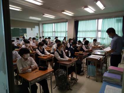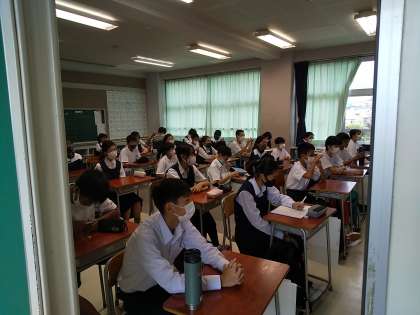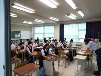 どの学年の生徒もみんなしっかりと放送を聴いています。さすが松中生ですね!今週もとても良いスタートができました。この調子で充実した一週間にしましょう。