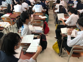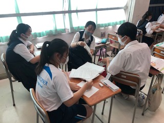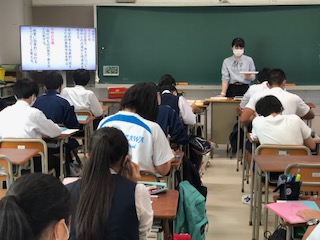 3年生の国語の授業は「枕草子」を学習しています。今日の授業の目標は、『現代のものの見方、考え方と比較する』と『他者に効果的に伝わるキャッチコピーを考える』です。4人組の班で自分の考えを書いたワークシートを回し、意見や考えを共有していました。キャッチコピーの発表は次回になりますが、時代を超えて、どんな枕草子のキャッチコピーが飛び出すか、楽しみですね!