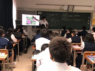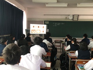 3年生の理科では「遺伝」について学習しています。その仕組みを理解しやすいように、ビデオ画像やパワーポイント教材を使って授業を進めていました。生徒たちは熱心に授業に参加していました。