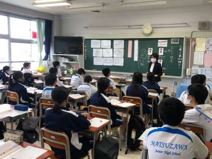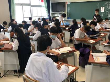 1年生は「よりよい学校生活、集団生活の充実」の内容項目で「むかで競争」という題材を学習しました。運動会に向けてちょうどしっくりくる題材でした。生徒たちは、登場人物の行動や言動、心の変化を通して、学級や学校の一員として行事をつくりあげていく上で何が大事なのか、いろいろなことを感じたようです。
