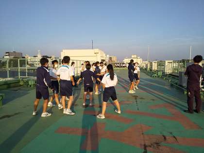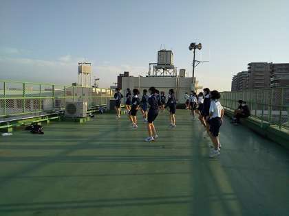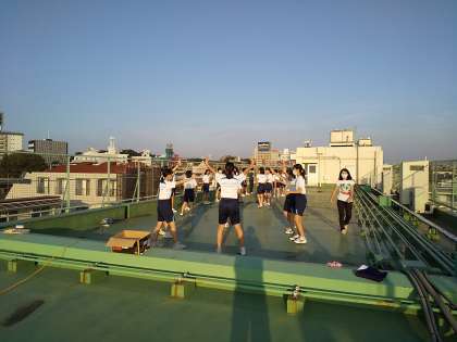 先週まで応援団の練習は3年生だけで行っていました。今日からそれに1,2年も加わっての練習になります。練習場所はこの時期だけ使用可能になる校舎屋上です。朝方は少し雨も残っていましたが、午後からすっかり天気も良くなり、屋上から見える青空はとってもきれいです。各色の応援団は時折笑い声も聞こえてくるくらい良い雰囲気で練習をしていました。きっとこれから素敵な応援ができてくるに違いありません。みんながんばってくださいね!