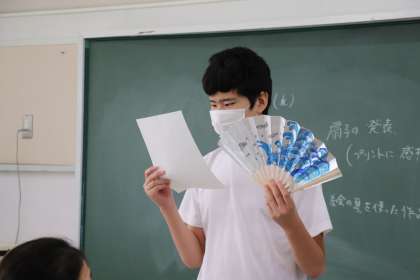 今日は作品の発表を行いました。制作しての感想や、工夫した所などを発表しました。お互いの作品の良さを感じ、とても良い時間となりました。