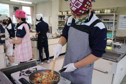 炊き込みご飯の具材は、フライパンでしっかりと炒めてから炊飯器で炊きました。