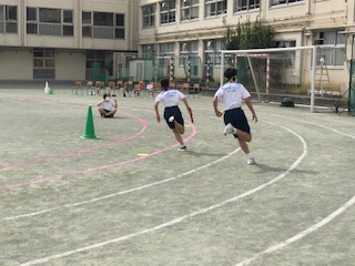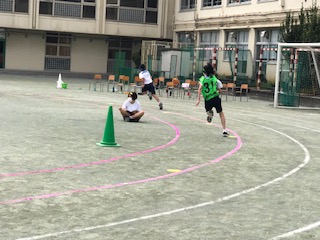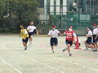 全員リレーは全学年実施です。ときわ学級は、1年生と一緒に走り、心強い3年生の助っ人が入ります。みんな頑張っています。