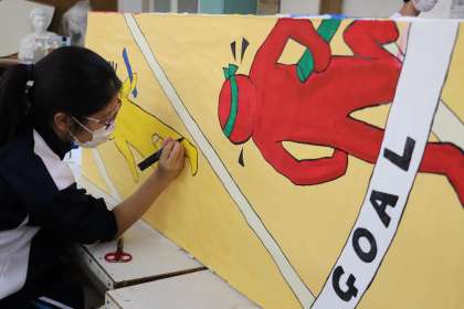 毎年、美術部では、運動会の入退場門の制作をしています。