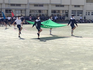 4校時に、運動会前最後の全体練習がありました。行進練習にも気合が入ります。