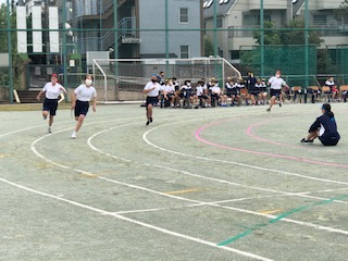 3年生女子80M走です。中学校最後の80M走、気合が入ります。