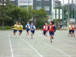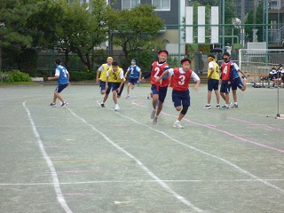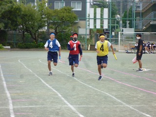 2年生の学級対抗リレーの様子です。白熱した試合展開です。