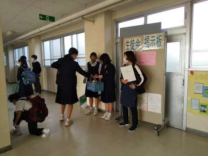 朝8時から生徒会役員が1,2年生と3年生の玄関にわかれて立ち、エコキャップの回収をしていました。今週は、あと明日水曜と金曜に回収の予定です。どうぞ多くの人からの協力を待っています。