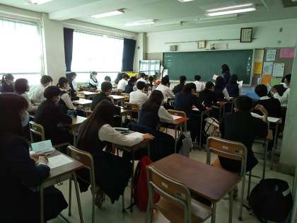 すがすがしい一週間の始まり。月曜の朝です。今朝の全校朝会も放送で行われました。今月の校長先生の講話は生徒に一枚ずつ配布されたプリントを使ってのお話です。まさに全校生徒が放送を教室で聞いているという今の状況を上手に使った方式です。各教室では生徒たちはそのプリントを見ながら、しっかりと話を聞いていました。
