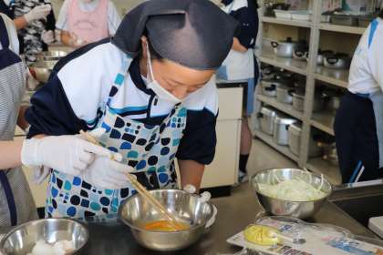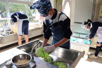 班によっては、ハンバーグの付け合わせのレタスをスープに入れて作りました。