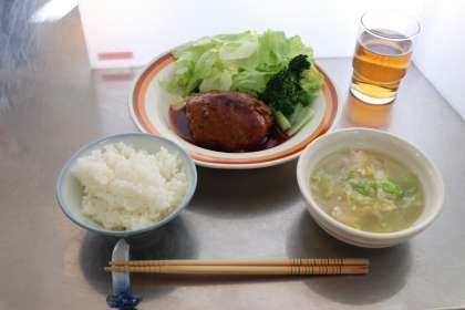 みんな大好きハンバーグと、オニオン卵スープが仕上がりました。