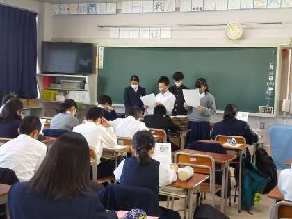 感染症対策のため後期の生徒総会も全校生徒が一堂に集まることはできません。そのため今週の火曜放課後に中央委員会を開催し、あらかじめクラスの代表生徒が話し合いをしておきました。今日は、その代表生徒が各クラスで中心となり、総会での質疑を学級ごとに報告・確認をしました。どのクラスもしっかりと話し合いに取り組み、本校の自治的活動がとても充実していることが分かります。