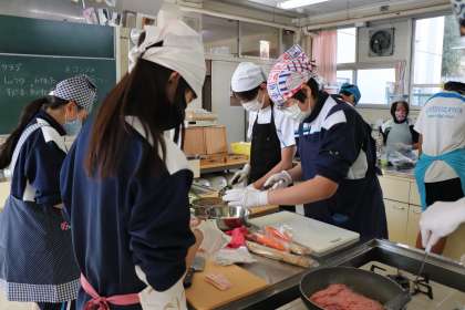 ボロネーゼのひき肉は、両面焼きをしてからほぐしました。