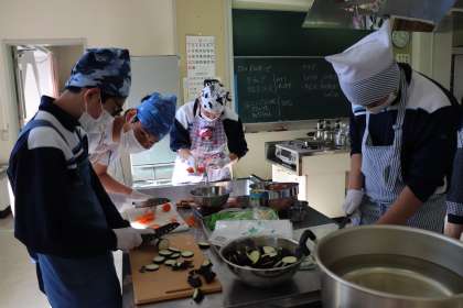 スパゲッティは、大きな鍋に、お湯たっぷりで茹でました。